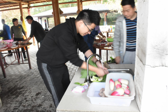 上午10點(diǎn)開始野炊。野炊用的食材全部由村里提供,魚需要自己撈,青菜需要自己去菜地采摘。每組飯菜燒好后,公司成立臨時(shí)評(píng)審小組,對(duì)每組的燒飯時(shí)間、菜品、米飯質(zhì)量、口味進(jìn)行評(píng)選。野炊場面既激情如火又溫馨和諧,員工們默契配合,發(fā)揚(yáng)了團(tuán)結(jié)協(xié)作的精神,每個(gè)人都有自己的角色,相互幫助、鼓勵(lì),最終獻(xiàn)上種類豐富、味道可口的菜品。