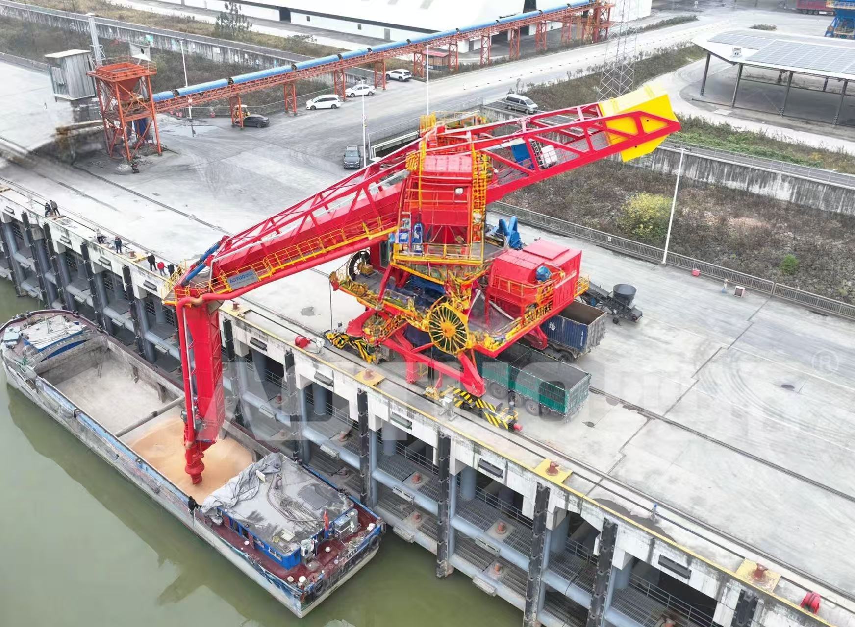 奧拓多物料環(huán)保卸船機在紹興嵊州港提升改建工程成功交付 Aotuo Multi-material Environmental Ship Unloader Successfully Delivered for Shaoxing Shengzhou Port Upgrade Project