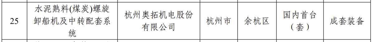 近日,杭州奧拓機電股份有限公司(以下簡稱“奧拓股份”)自主研發(fā)的“水泥熟料(煤炭)螺旋卸船機及中轉(zhuǎn)配套系統(tǒng)”,成功獲評國內(nèi)首臺(套)裝備認(rèn)定。該裝備屬于國家重點支持的高端裝備產(chǎn)業(yè)領(lǐng)域,是港口物流中補短板、填空白的裝備產(chǎn)品,通過浙江省機械工業(yè)聯(lián)合會組織成果鑒定,鑒定委員會一致認(rèn)為:“該成果技術(shù)難度大,創(chuàng)新性強,技術(shù)整體處國際先進水平,同意通過鑒定”。