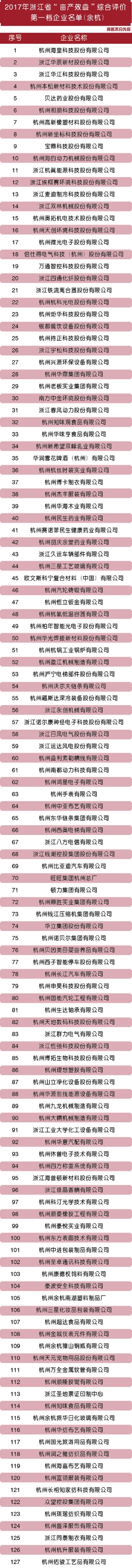 近日,省經(jīng)信委公布了《2017年浙江省“畝產(chǎn)效益”綜合評(píng)價(jià)第一檔企業(yè)名單》,其中我區(qū)老板實(shí)業(yè)、貝達(dá)藥業(yè)、南方中金等127家企業(yè)躋身第一檔企業(yè)名單,入選企業(yè)數(shù)量居全市前列。