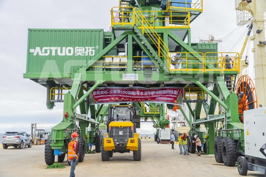 奧拓股份向菲律賓客戶提供的AOTUO輪胎移動式螺旋卸船機(jī)順利投產(chǎn)!AOTUO brand tire mobile screw ship unloader provided by HZAT to Phi...